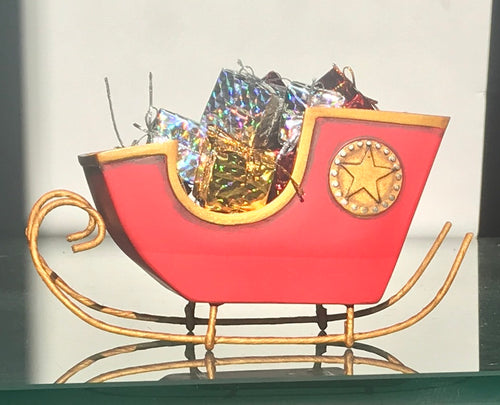 "Santa's Sleigh" filled with wrapped gifts by Lori Mitchell